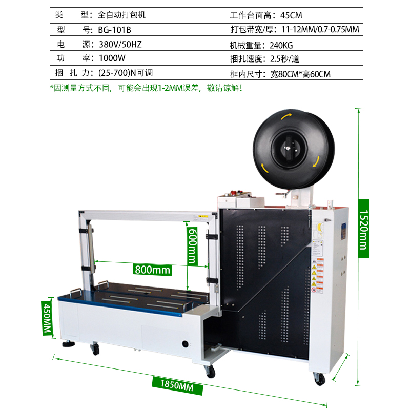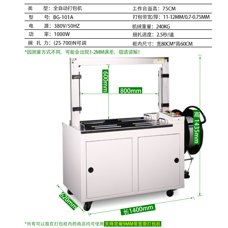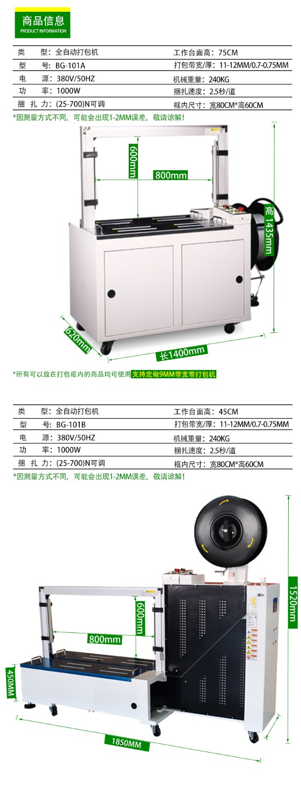 • 適應性:好的打包機能夠適應不同材質、寬度和厚度的打包帶,以及不同尺寸和形狀的物品。在使用不同規格的打包帶和對不同物品進行打包時,設備應能自動調整參數,保證打包質量。