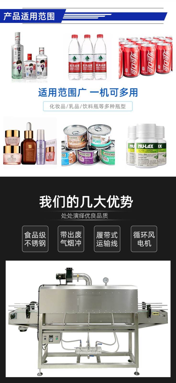 • 高效熱收縮效果,蒸汽溫度均勻性好,能使包裝膜受熱更均勻,收縮效果更佳,包裝后的產(chǎn)品外觀更加美觀、緊致,貼合度高。