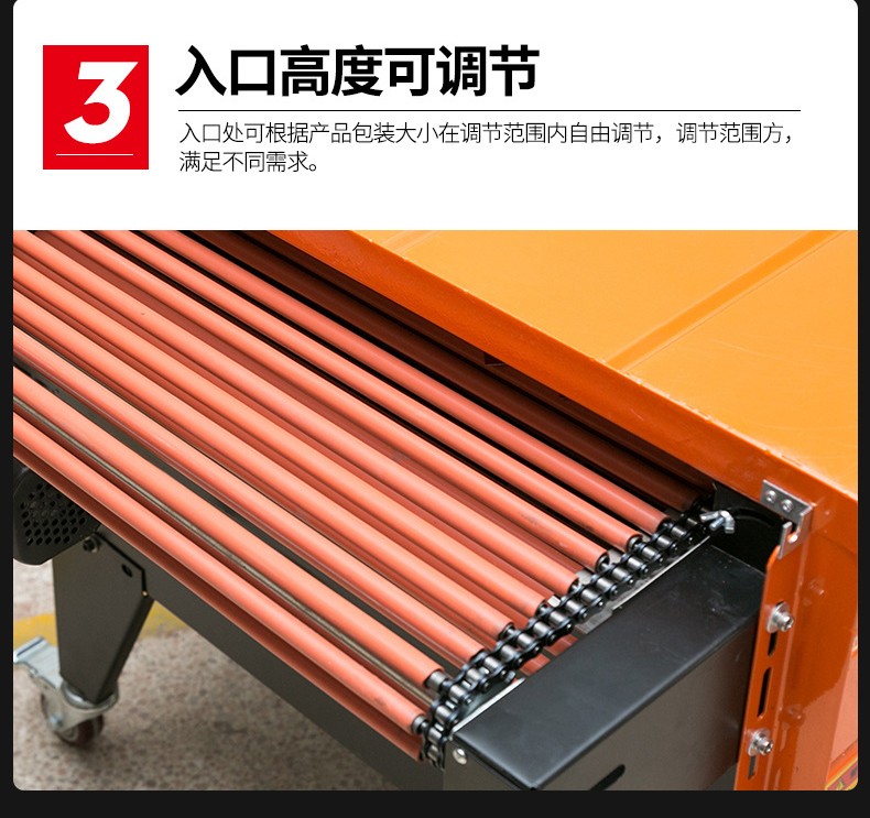 - 滾筒式熱收縮機(jī):通過滾筒的轉(zhuǎn)動(dòng)來輸送產(chǎn)品,適合包裝體積較大、較重的產(chǎn)品,如大型家電的外包裝。滾筒能夠承受較大的重量,并且可以根據(jù)產(chǎn)品的長度調(diào)整滾筒之間的間距。