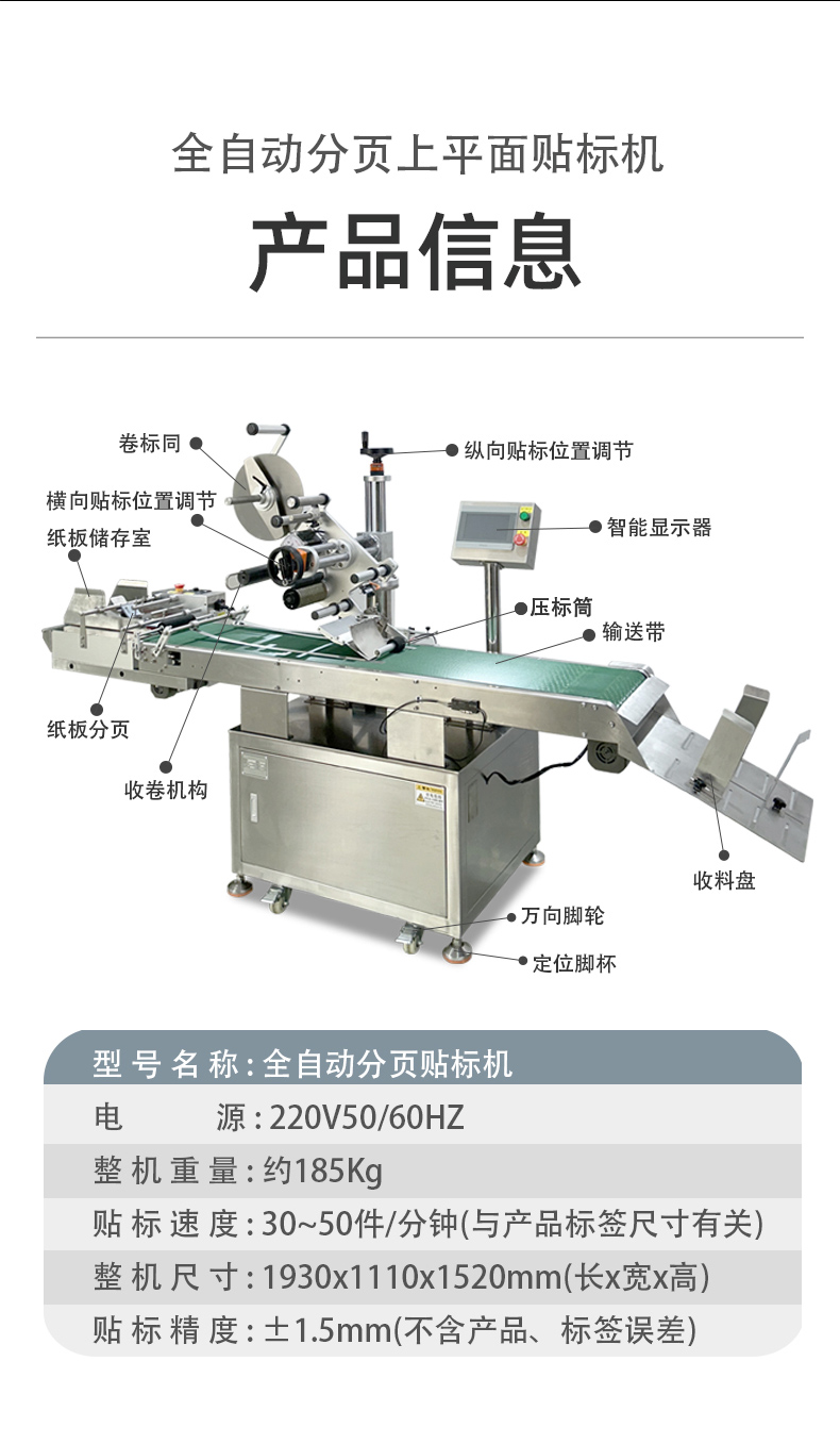 • 靈活性與適應(yīng)性:全自動分頁貼標(biāo)機(jī)可以根據(jù)不同的產(chǎn)品和標(biāo)簽需求進(jìn)行快速調(diào)整和設(shè)置,能夠適應(yīng)多種產(chǎn)品規(guī)格和標(biāo)簽樣式的貼標(biāo)任務(wù)。無論是產(chǎn)品尺寸的變化還是標(biāo)簽內(nèi)容、形狀的改變,設(shè)備都可以通過簡單的參數(shù)設(shè)置或更換少量部件來滿足新的生產(chǎn)要求,在大規(guī)模生產(chǎn)中具有很強(qiáng)的靈活性和適應(yīng)性。