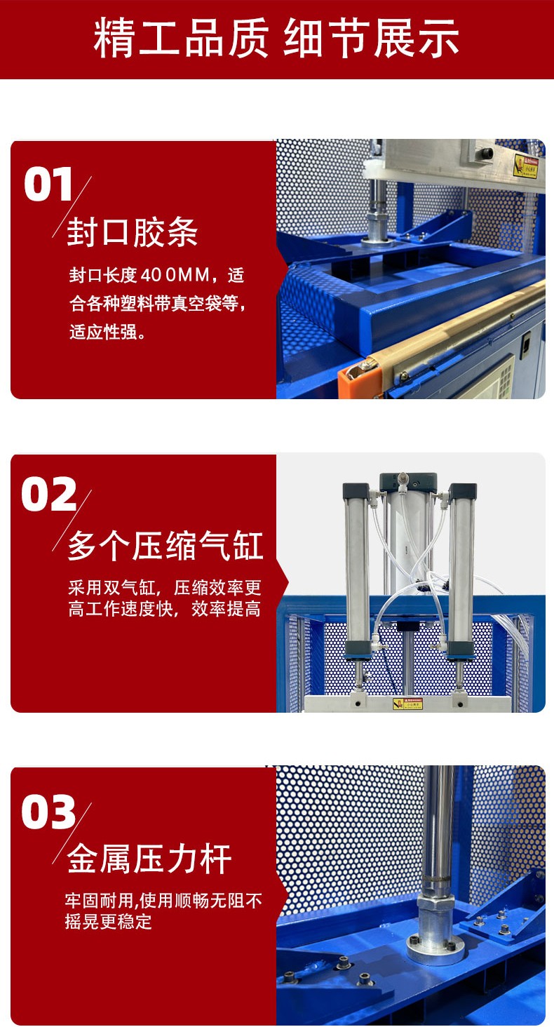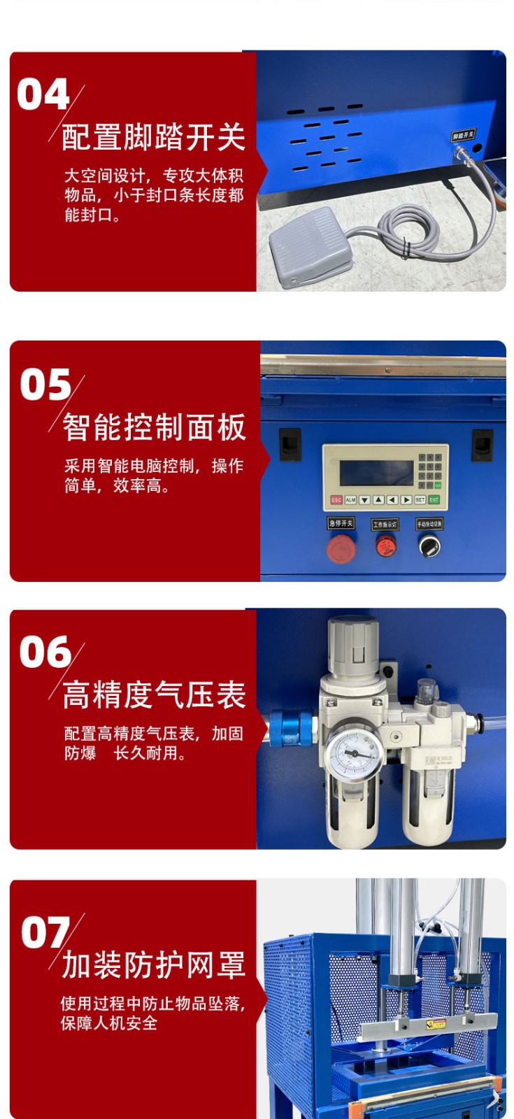 - 封口質(zhì)量好:通過(guò)精確控制加熱溫度和封口時(shí)間,能夠?qū)崿F(xiàn)牢固、平整的封口,密封性能良好,防止包裝袋漏氣。