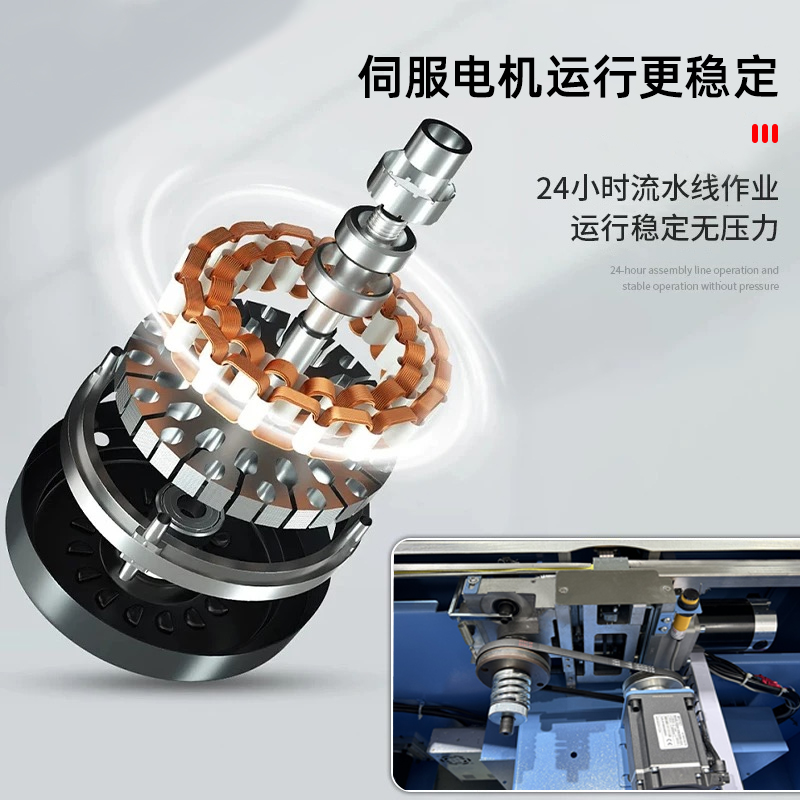 - 捆扎打包:根據(jù)預(yù)設(shè)的參數(shù),伺服電機(jī)驅(qū)動(dòng)打包帶圍繞物品進(jìn)行捆扎。在捆扎過程中,伺服電機(jī)精確控制打包帶的張力,確保打包帶能夠緊密地貼合在物品表面,同時(shí)又不會(huì)對(duì)物品造成損壞。完成捆扎后,切斷機(jī)構(gòu)會(huì)自動(dòng)將打包帶切斷,并對(duì)末端進(jìn)行熱封或其他方式的處理,防止打包帶松開。