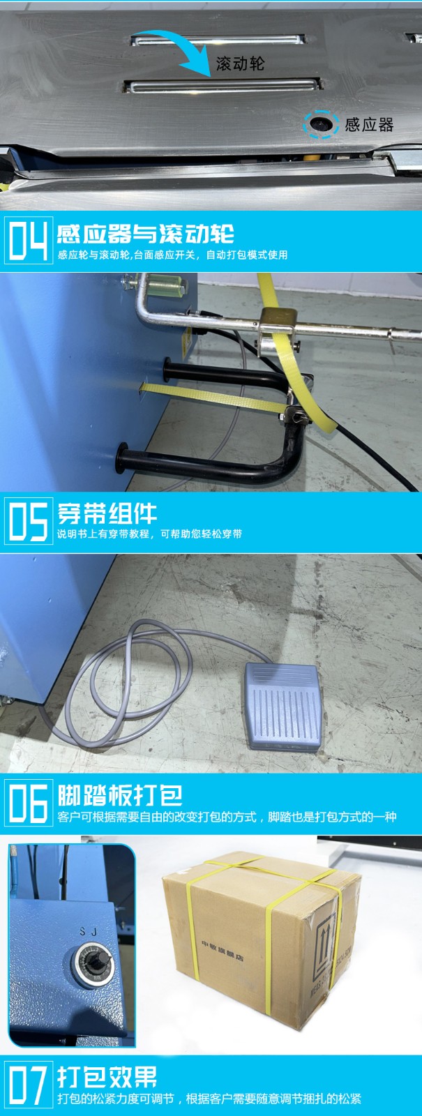 - 成品輸出:打包完成后,輸送帶會(huì)將打包好的物品送出打包區(qū)域,進(jìn)入下一道工序或直接進(jìn)行存儲(chǔ)、運(yùn)輸。