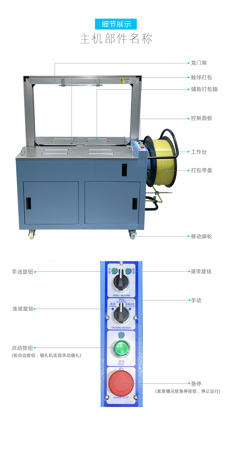 - 全自動(dòng)伺服打包機(jī)通常具有簡(jiǎn)潔、緊湊的外觀設(shè)計(jì),整體結(jié)構(gòu)堅(jiān)固耐用。其機(jī)身主要由框架、工作臺(tái)、輸送帶、控制箱等部分組成。框架一般采用優(yōu)質(zhì)金屬材料制成,經(jīng)過精細(xì)加工和表面處理,具有良好的穩(wěn)定性和耐腐蝕性。工作臺(tái)位于機(jī)器的中央位置,是放置待打包物品的區(qū)域,表面平整光滑,便于物品的放置和移動(dòng)。輸送帶貫穿整個(gè)機(jī)器,用于輸送物品進(jìn)出打包區(qū)域,其寬度和長(zhǎng)度根據(jù)不同的機(jī)型有所差異,以適應(yīng)各種尺寸的物品打包??刂葡渫ǔ0惭b在機(jī)器的一側(cè),集成了操作面板和控制系統(tǒng),方便操作人員進(jìn)行參數(shù)設(shè)置和對(duì)機(jī)器的運(yùn)行進(jìn)行監(jiān)控。