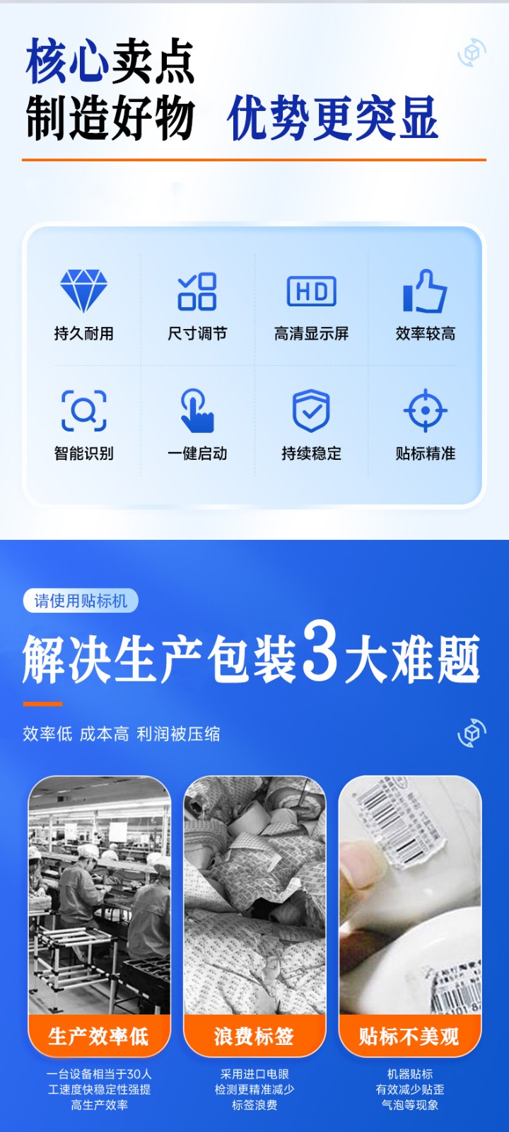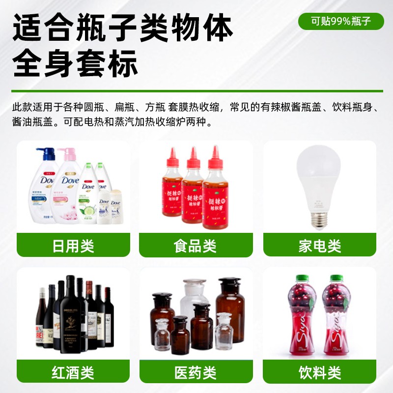 • 推送機構根據容器移動速度同步向下推送標簽,確保標簽在容器移動過程中 “無卡頓、無偏移” 地套合,套標位置誤差≤±0.5mm。