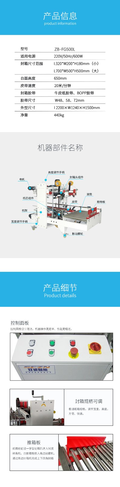 L型半自動角邊封箱機(jī) ZB-FG500L