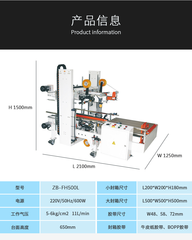 L型半自動角邊封箱機 ZB-FG500L