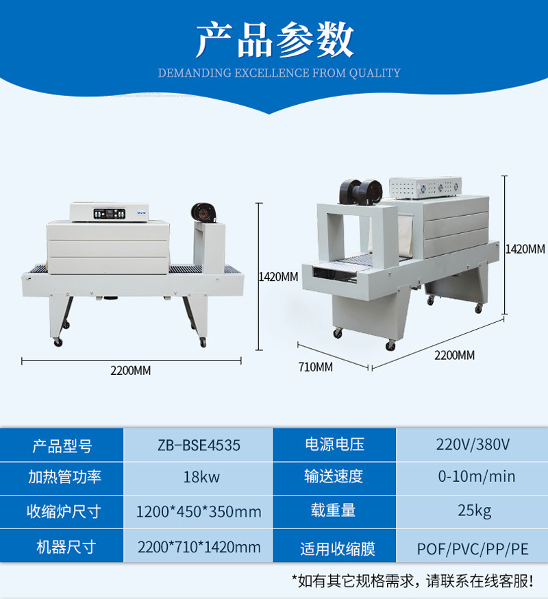 PE膜熱收縮機熱風循環收縮膜包裝機BSE-4535
